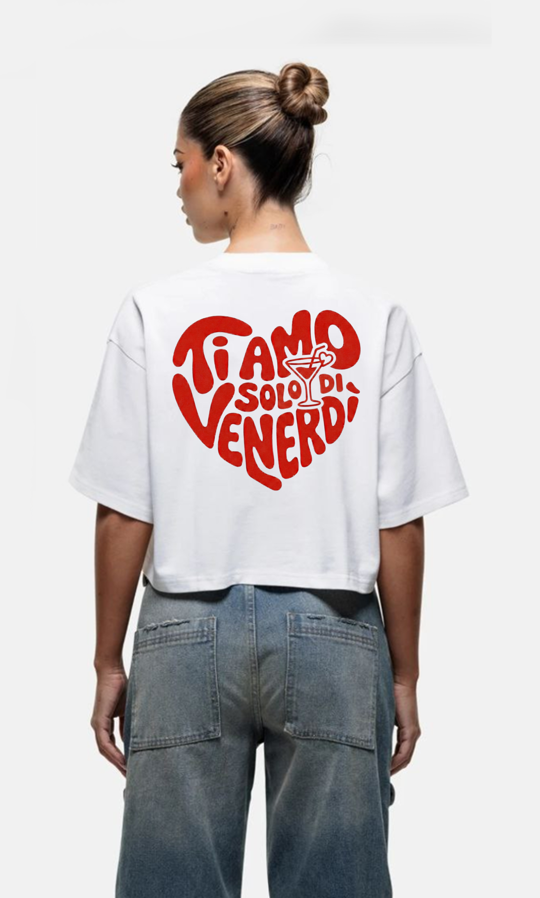T-Shirt CROP bianca Ti Amo solo di Venerdì Love